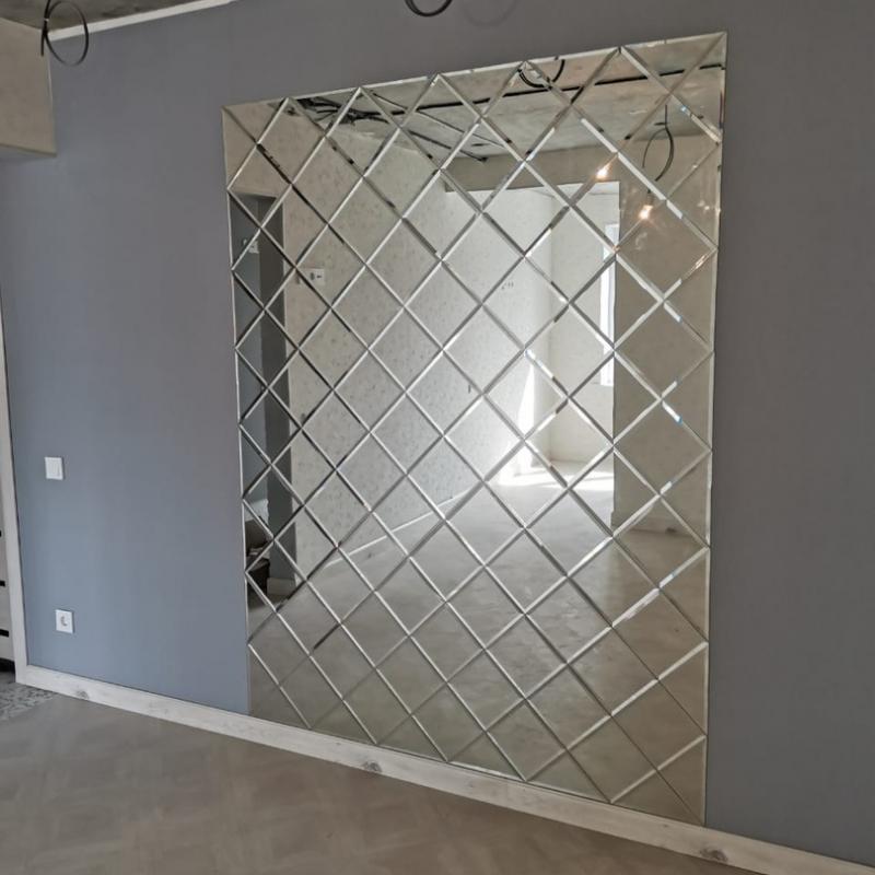 Использована зеркальная квадратная плитка с фацетом.